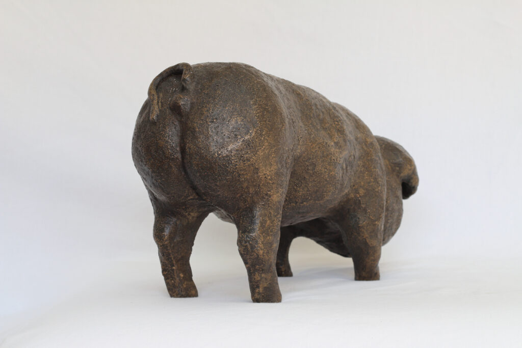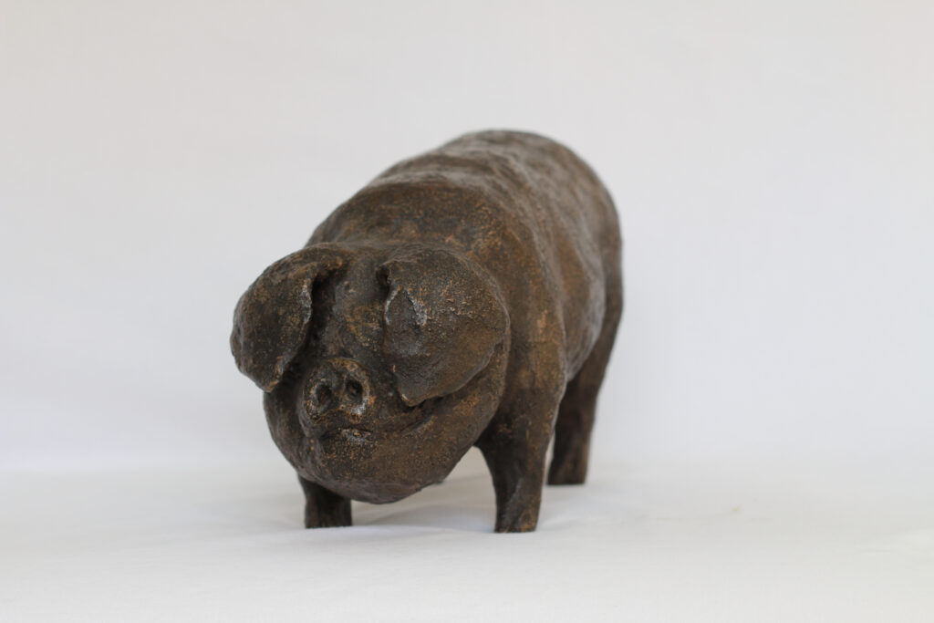 A charming sculpture of a pig. Nina always likes to capture the character & personality of her animals she sculpts as she has done here, thus bringing her pig to life.